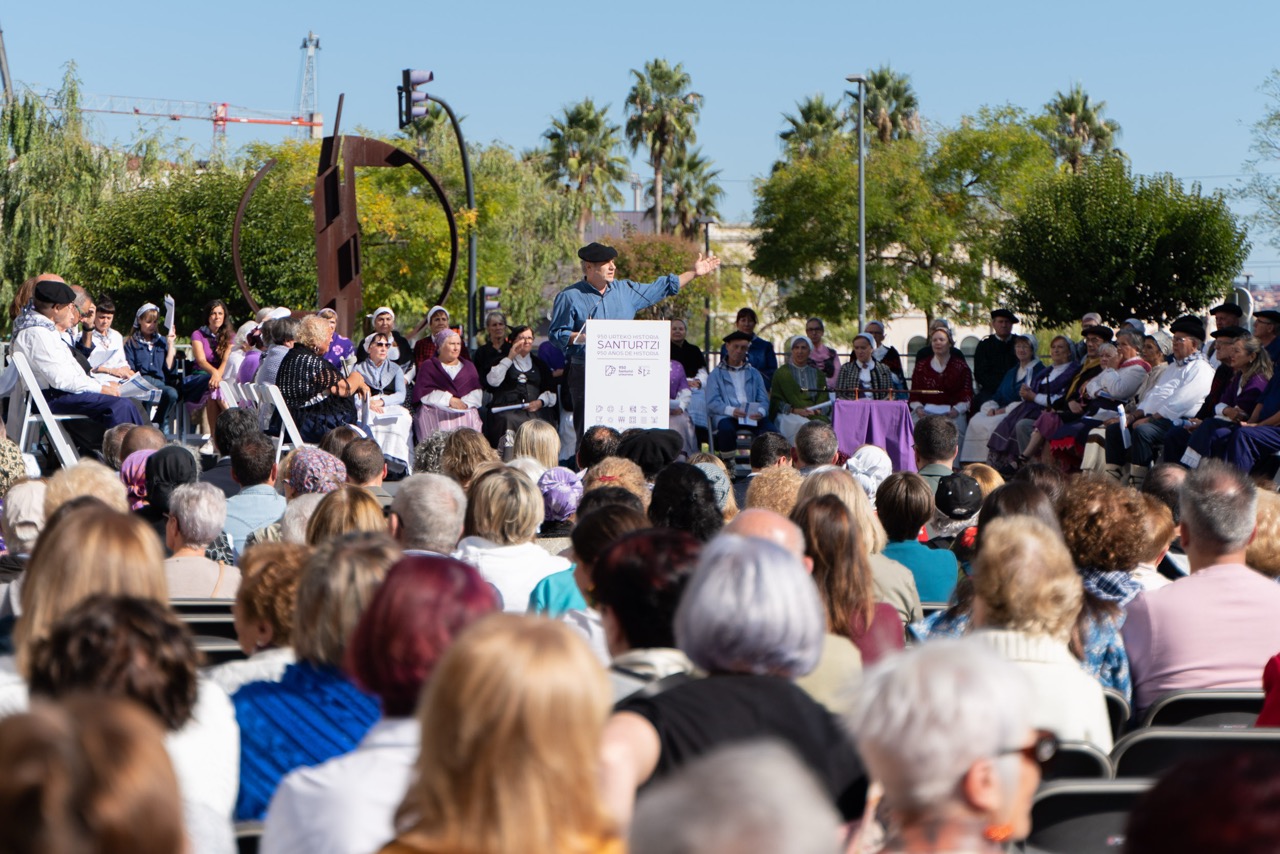 El 5 de abril recuperamos otro espectáculo histórico del municipio, la actuación «Gora Santurtzi», un acto que se celebró por última vez hace más de dos décadas. De la mano de los cinco grupos de danzas locales (Bihotz Gaztea, Mahastiako, Mamarigako Etorkizuna, Mendi Alde y Zugaitza) y la Banda de Txistularis de Santurtzi, revivimos este espectáculo, en el que participaron unas 180 vecinos y vecinas de Santurtzi.